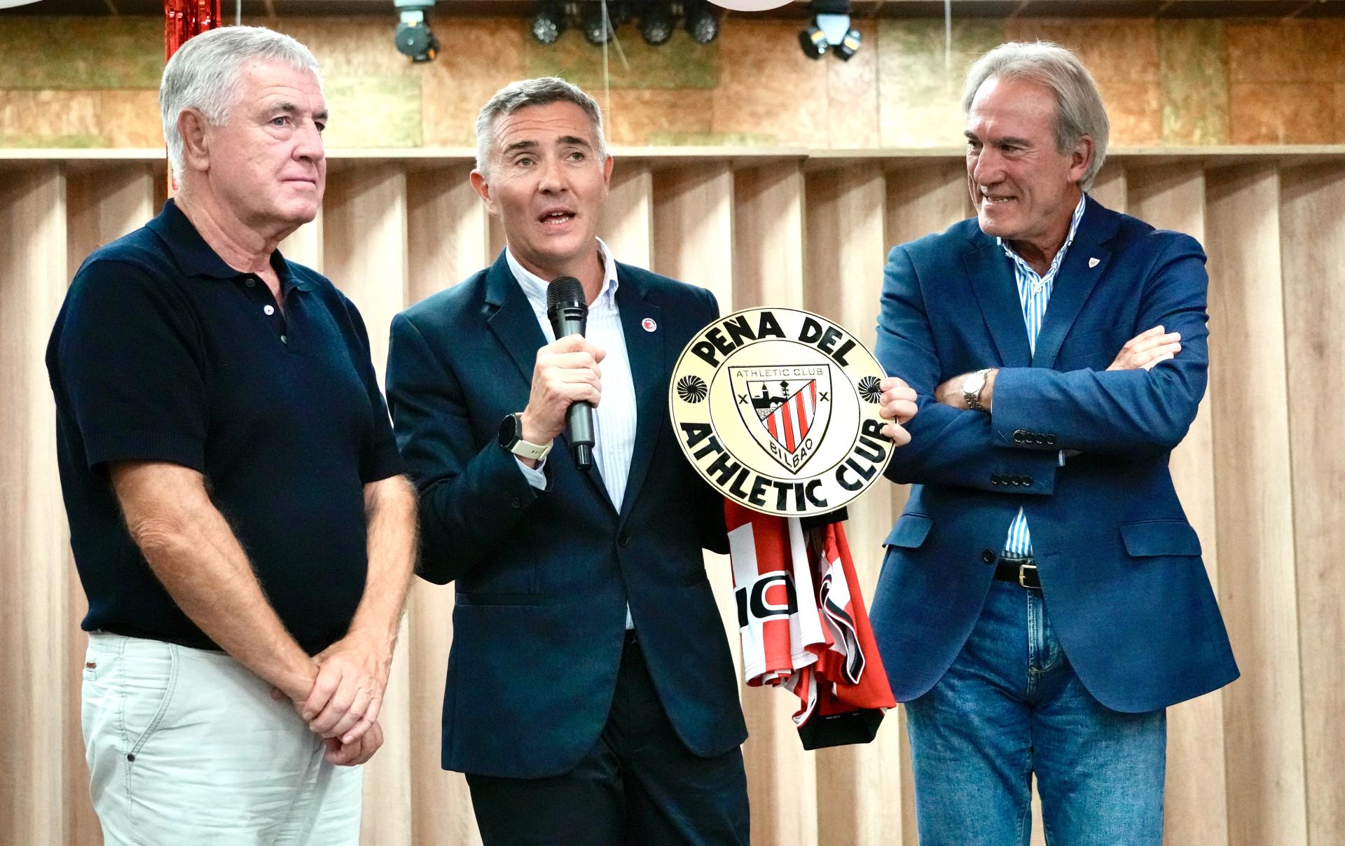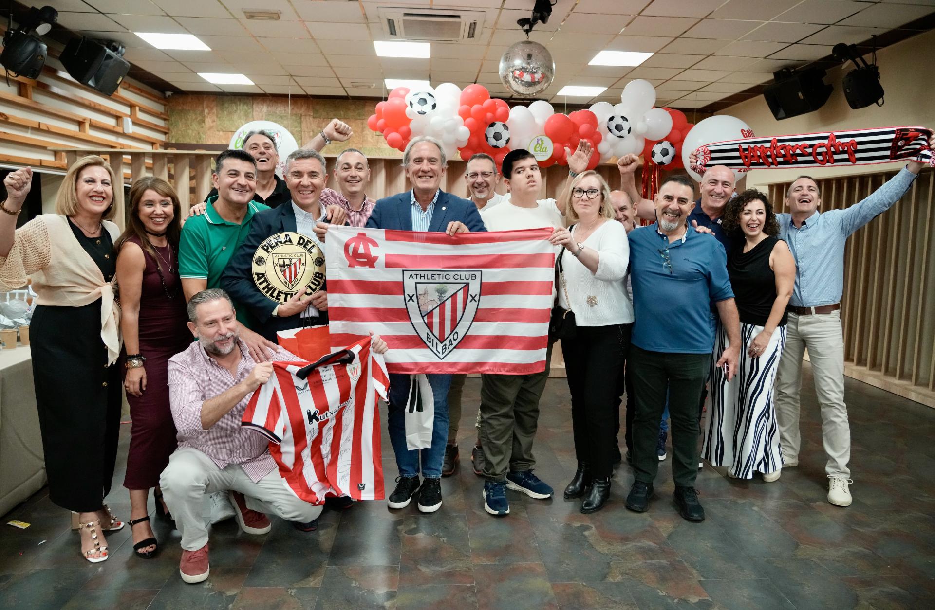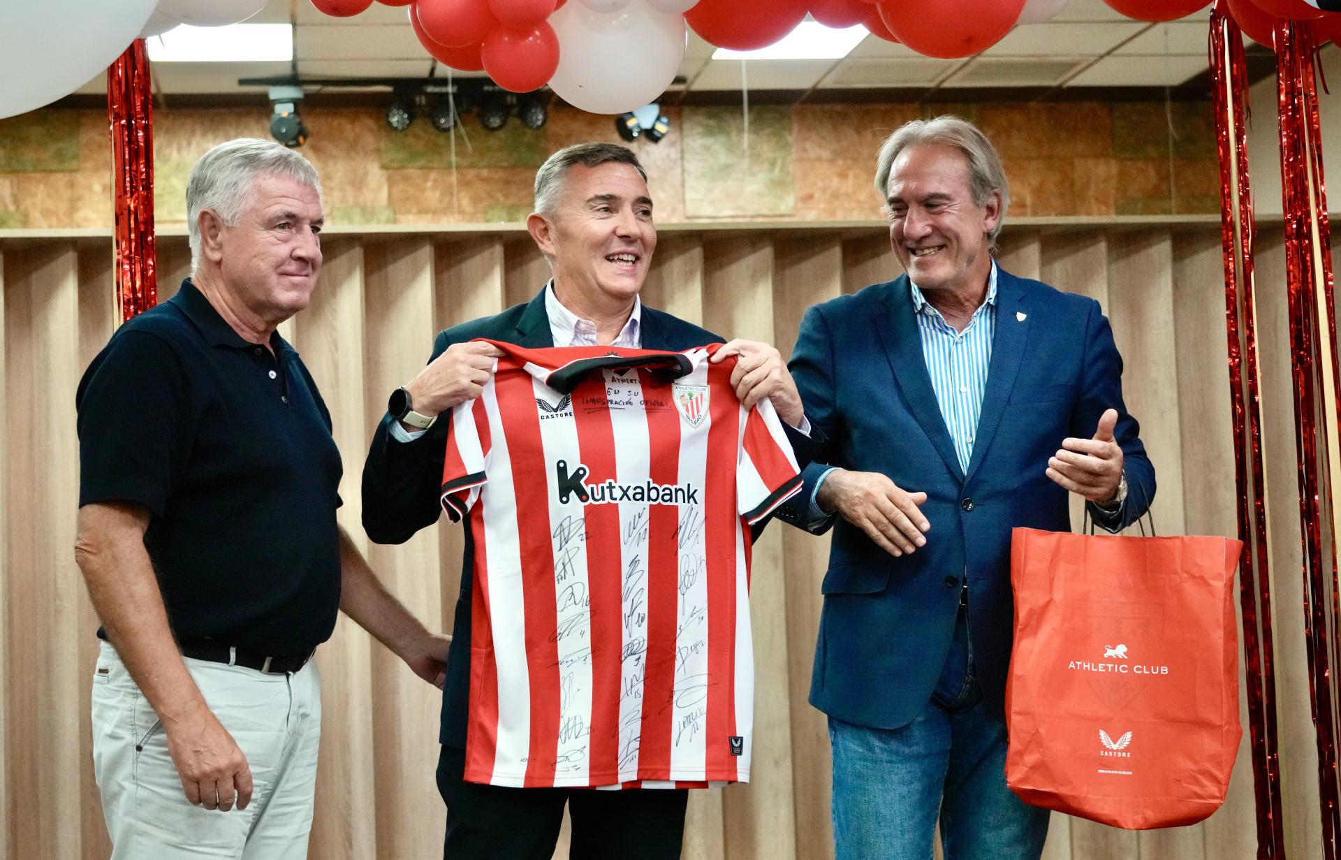 Andoni Goikoetxea, en nombre del Athletic Club, fue el encargado de hacer entrega de la placa dorada que confirma la presencia de Totana en la familia peñista rojiblanca.