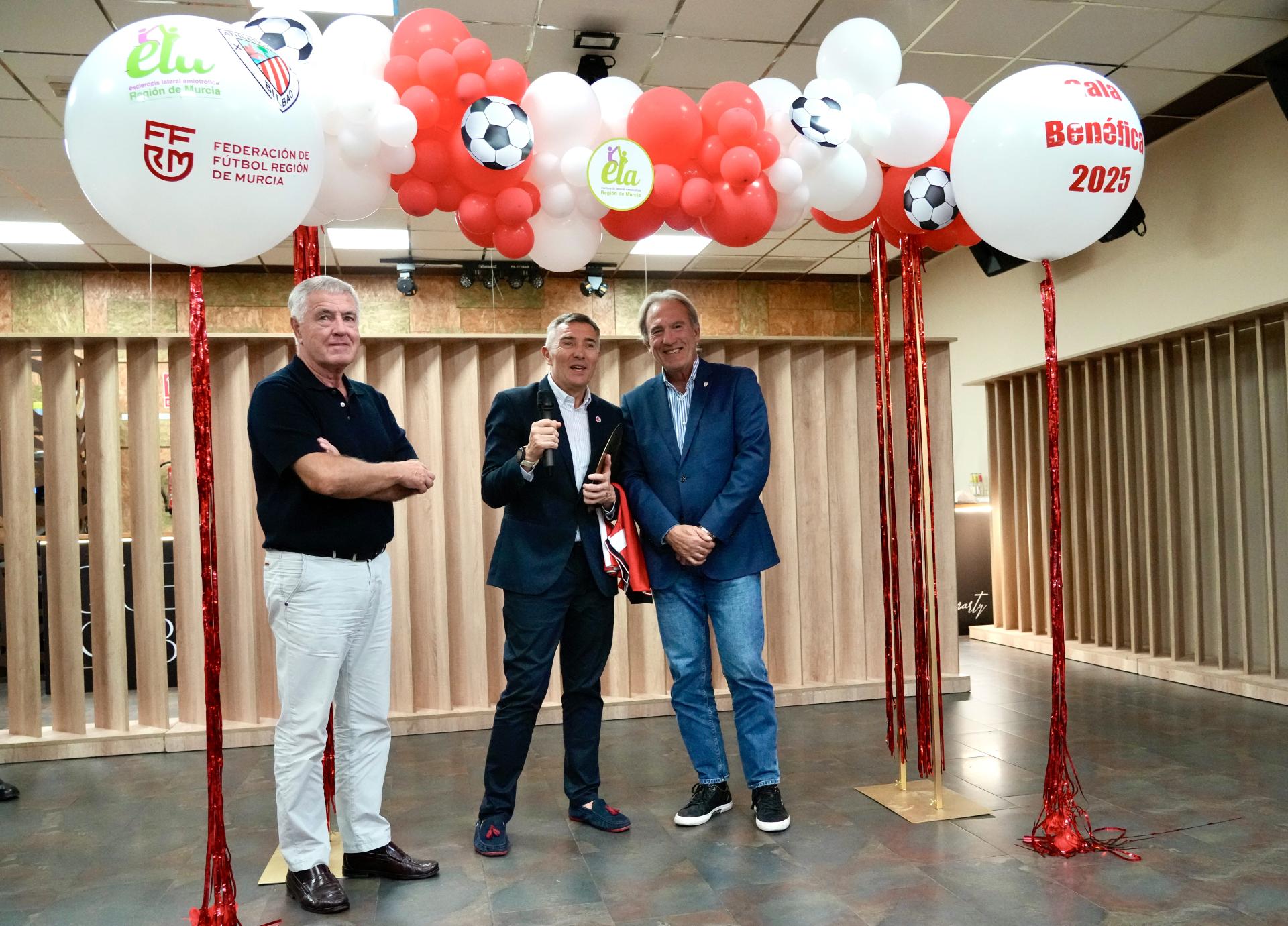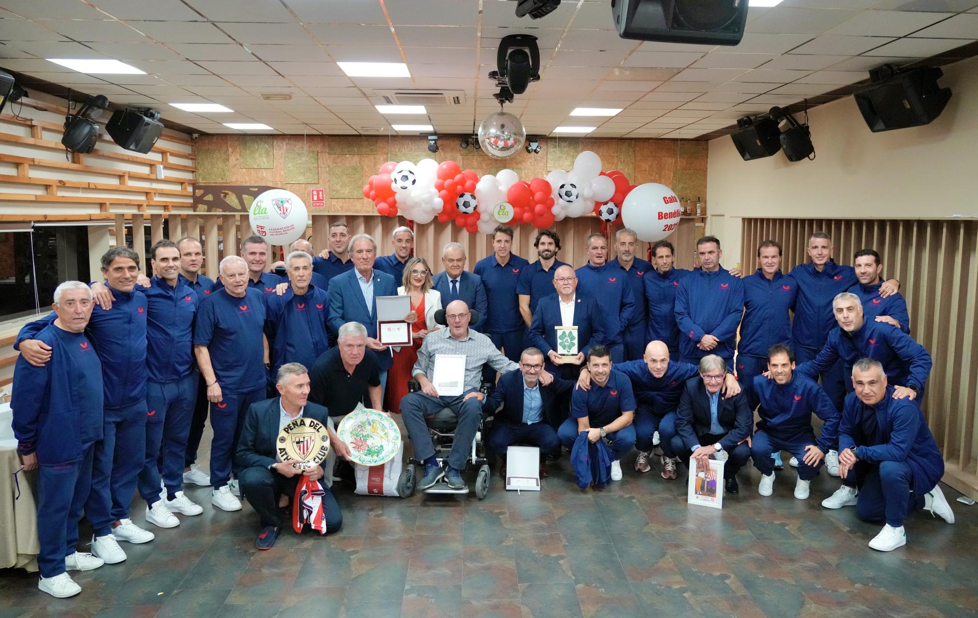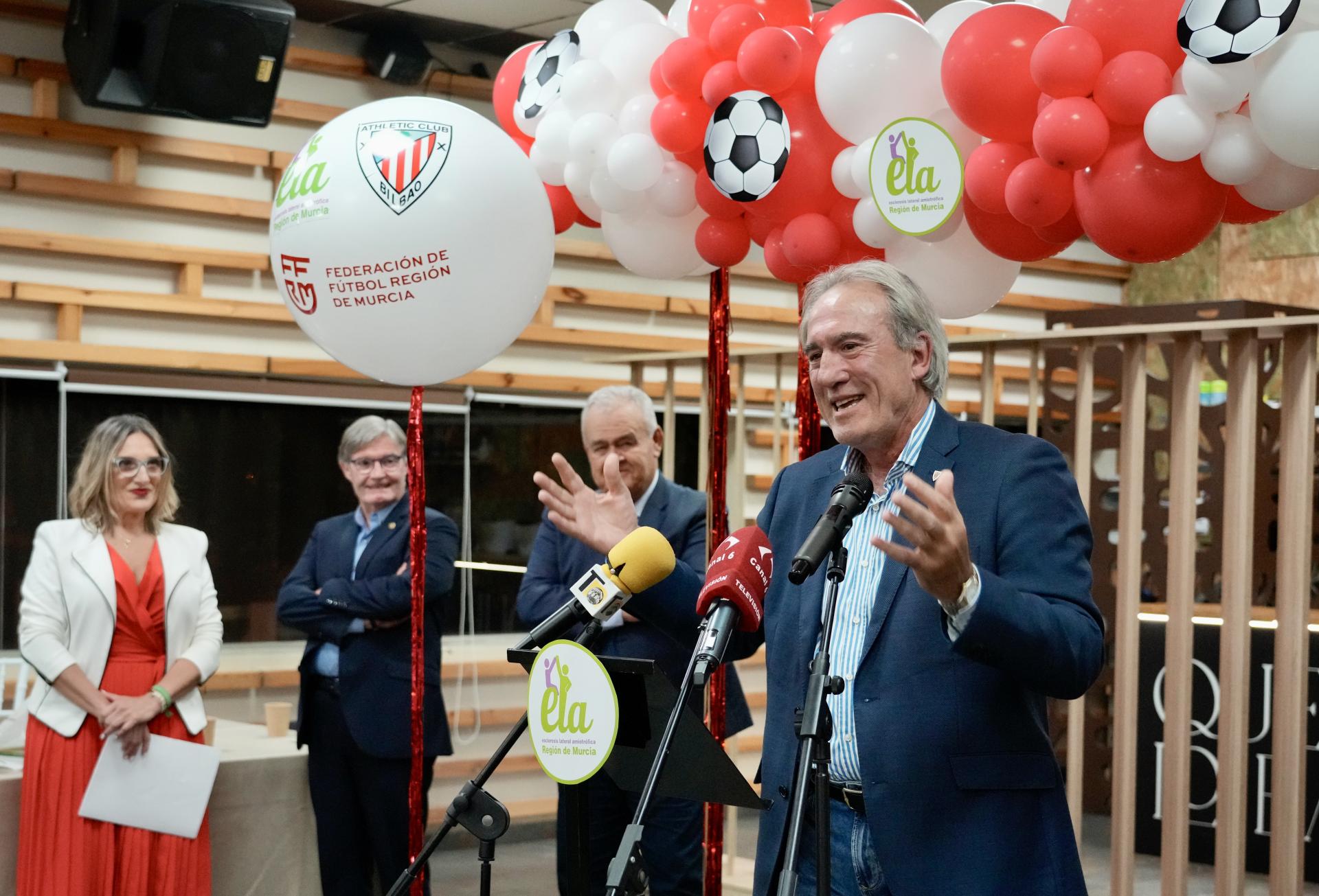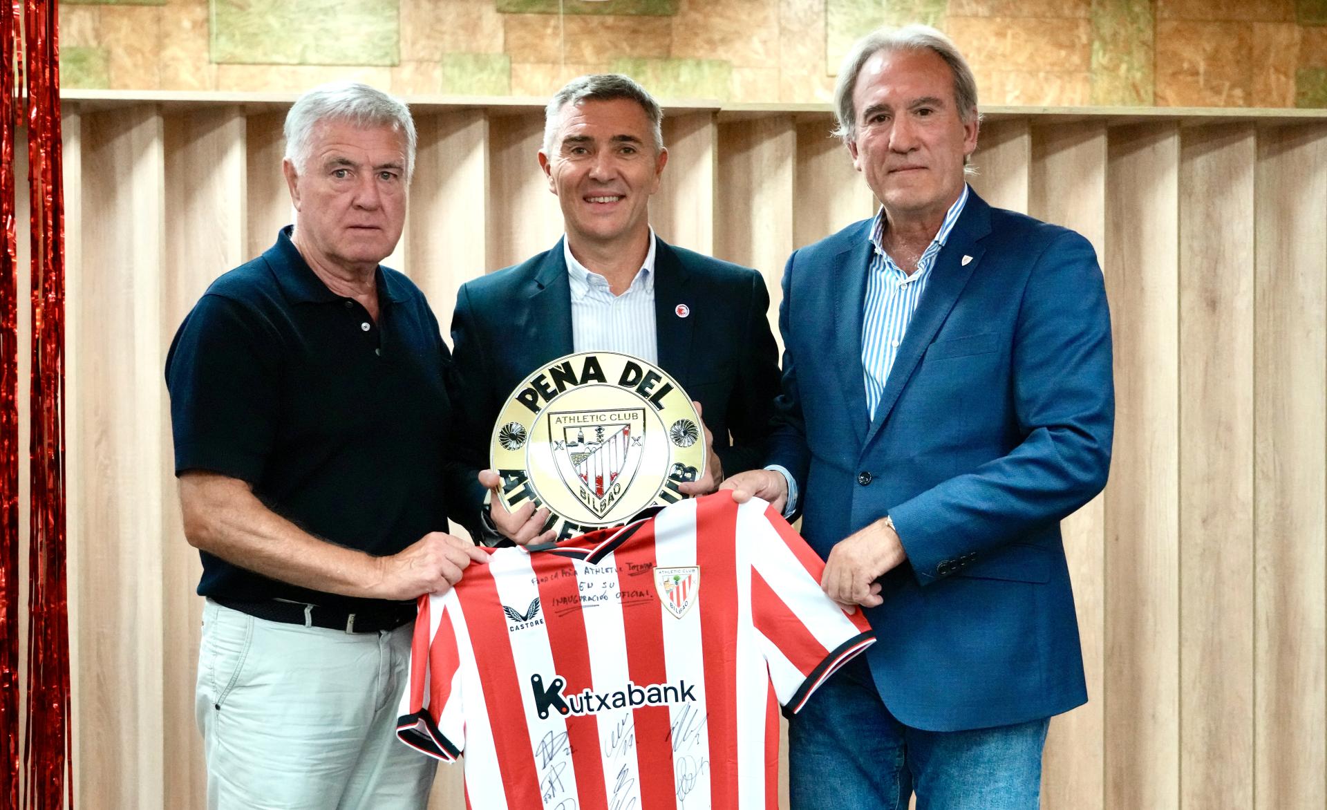 Andoni Goikoetxea, en nombre del Athletic Club, fue el encargado de hacer entrega de la placa dorada que confirma la presencia de Totana en la familia peñista rojiblanca.