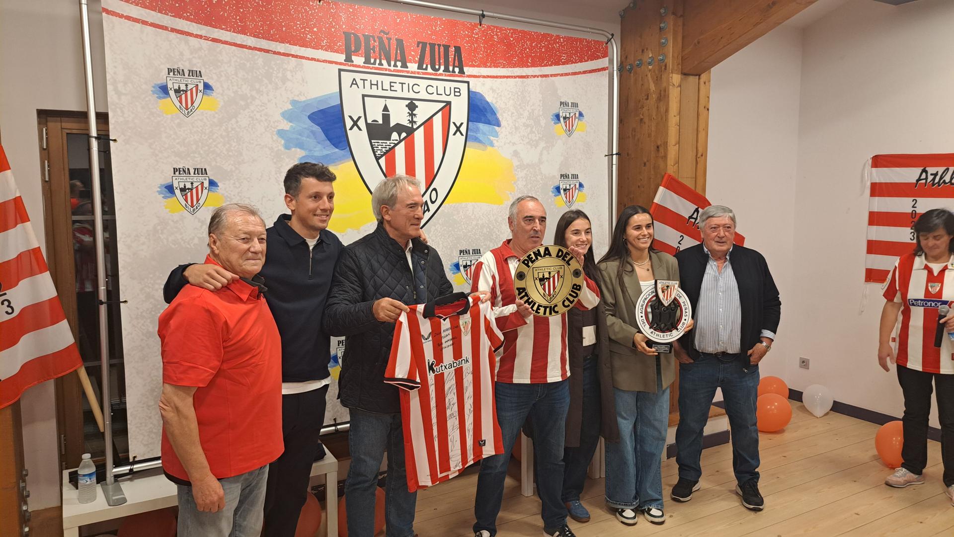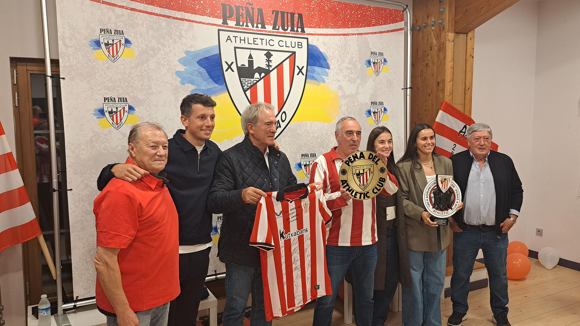 El acto contó con una representación de lujo por parte del club: Mikel Vesga, por parte del primer equipo rojiblanco, Ane Azkona y Naia Landaluze del femenino, y Andoni Goikoetxea y Manolo Delgado, quienes quisieron acompañar a los nuevos peñistas en un día tan señalado.