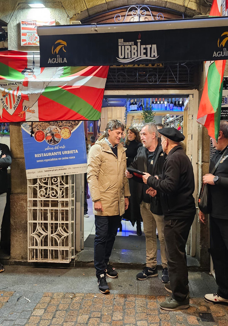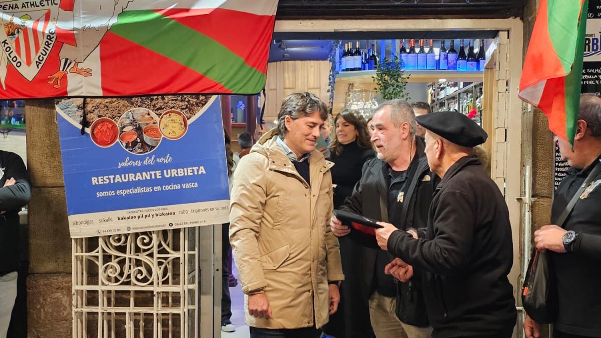 El exleón de Portugalete disfrutó con los peñistas y aficionados que se acercaron a la sede de la peña en el Casco Viejo bilbaino, donde recibió el cariño y admiración de todos ellos y mostró su gratitud por el premio recibido.