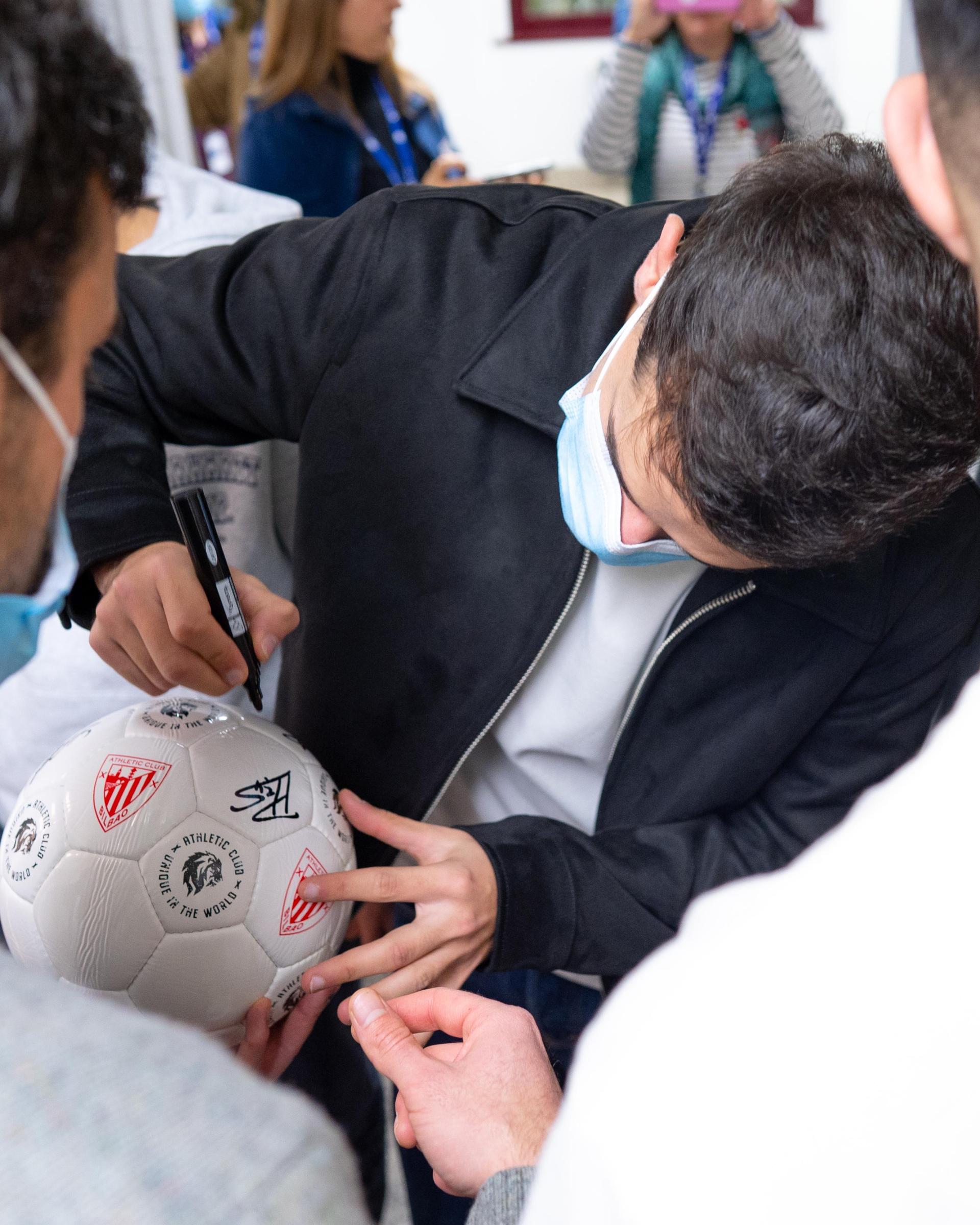 La mejor manera de poner la guinda al entrenamiento a puerta abierta en San Mamés: acordarse de los niños y niñas que no han podido ir por hospitalización. Eso también es Athletic.