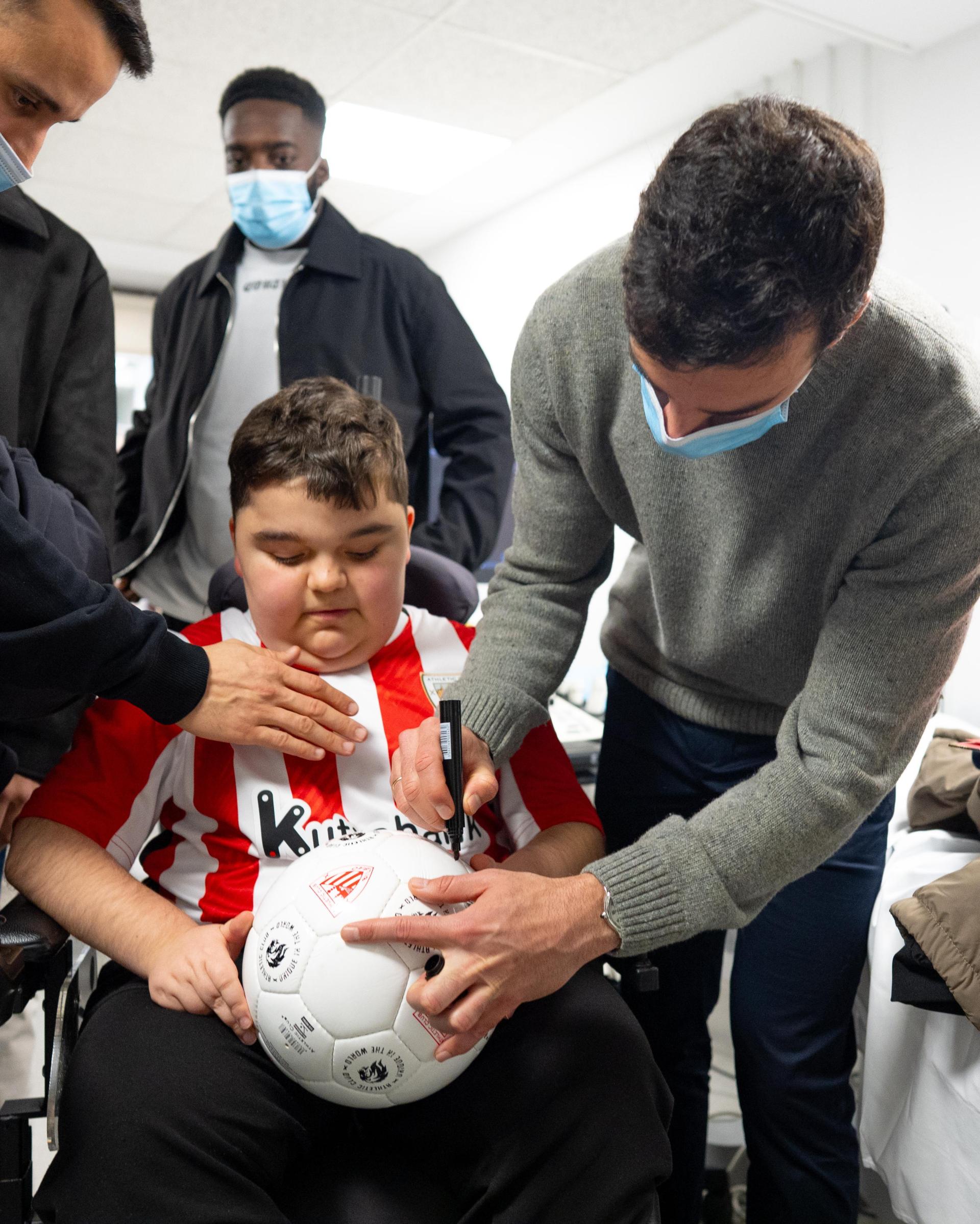 Durante la visita, los futbolistas reparten obsequios rojiblancos, se hacen fotografías y dedican fotografías firmadas, pero nada comparable a su compañía. La cercanía del futbolista supone para el txiki un momento de ilusión durante la enfermedad y un estímulo anímico para su recuperación.
