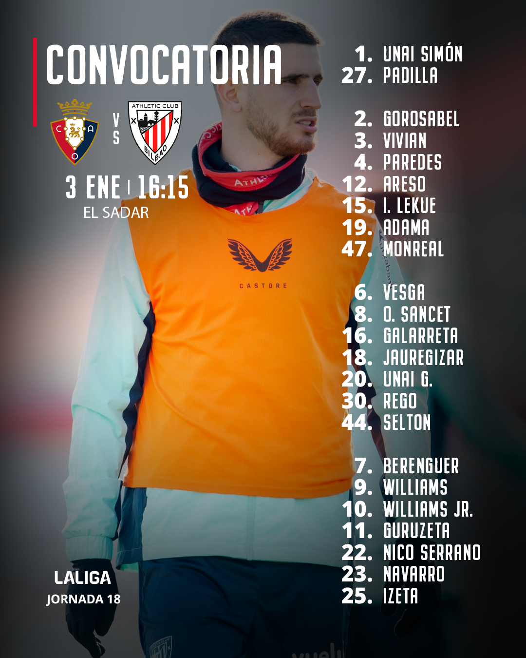 Convocatoria: CA Osasuna-Athletic Club (LaLiga 2025-26, J18)
