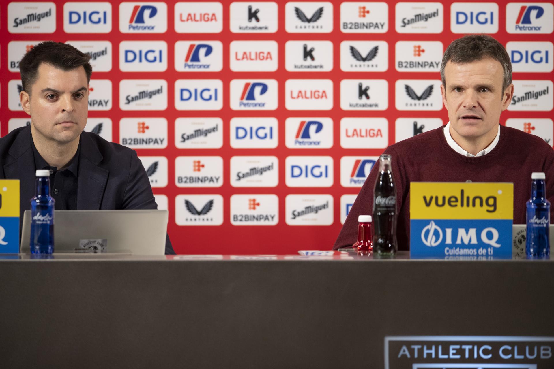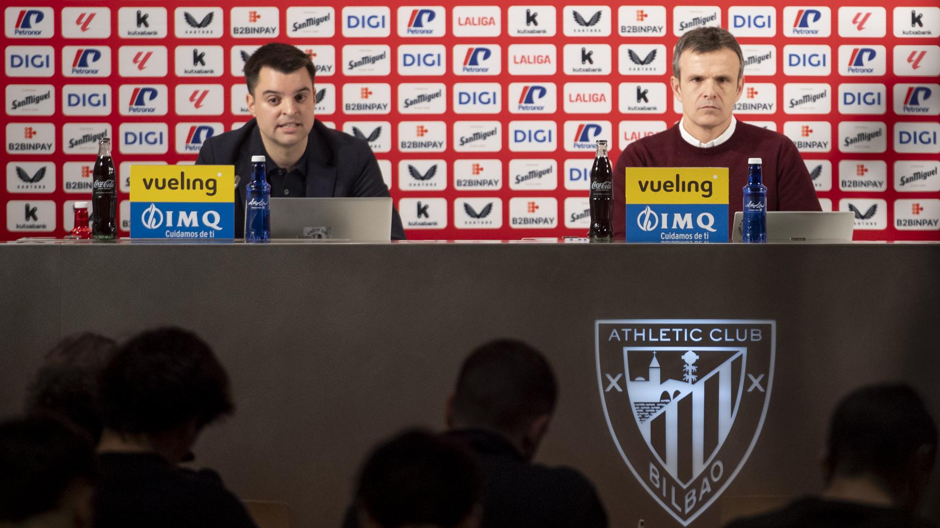 Jon Uriarte, presidente del Athletic Club, y Mikel González, director general de fútbol, hacen un balance realista de la primera mitad de la temporada del primer equipo masculino, advirtiendo del peligro de la espiral negativa en LaLiga, mostrando confianza en la plantilla e ilusión por la Copa