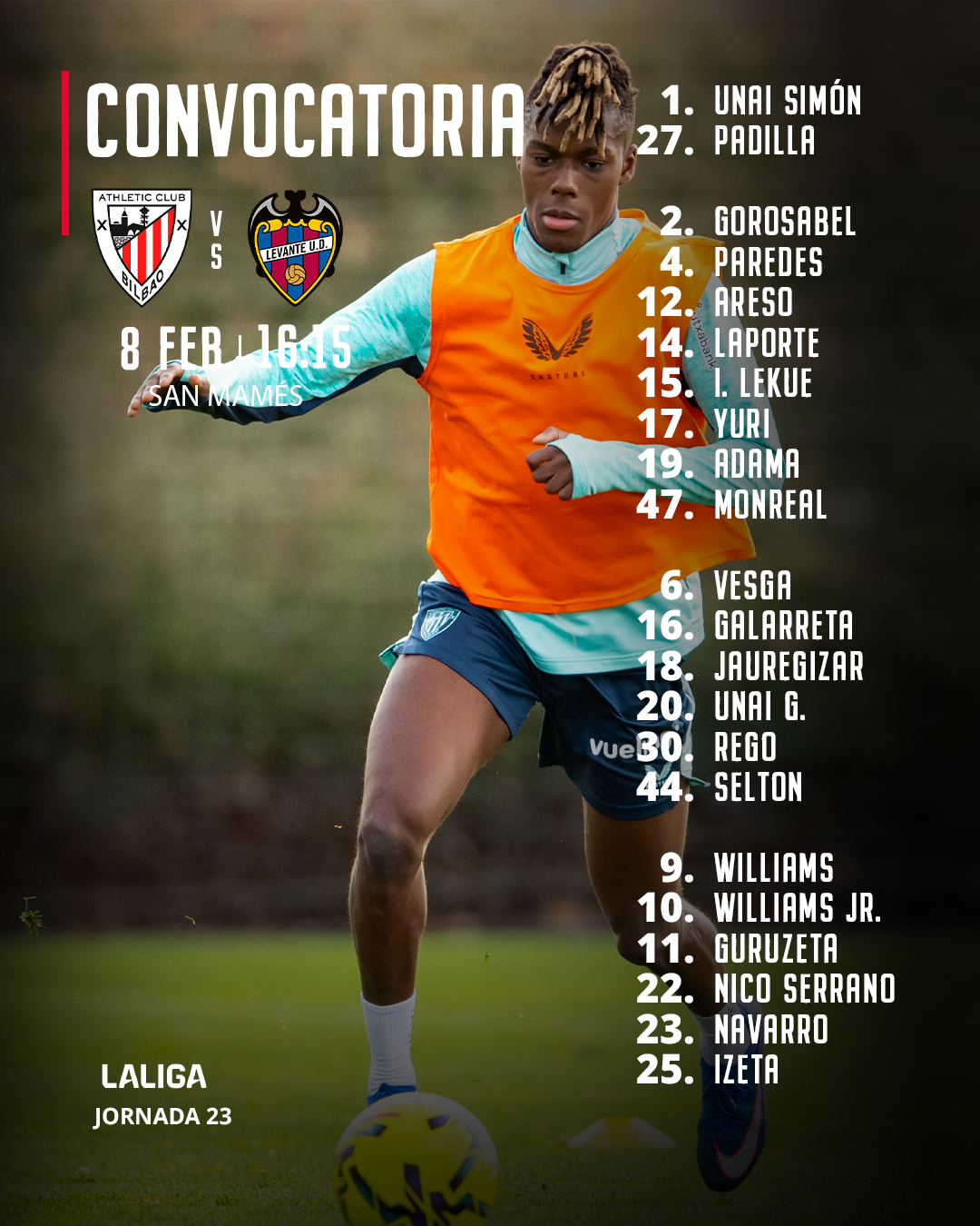 Convocatoria: Athletic Club-Levante UD - (LaLiga 2025-26, J23)