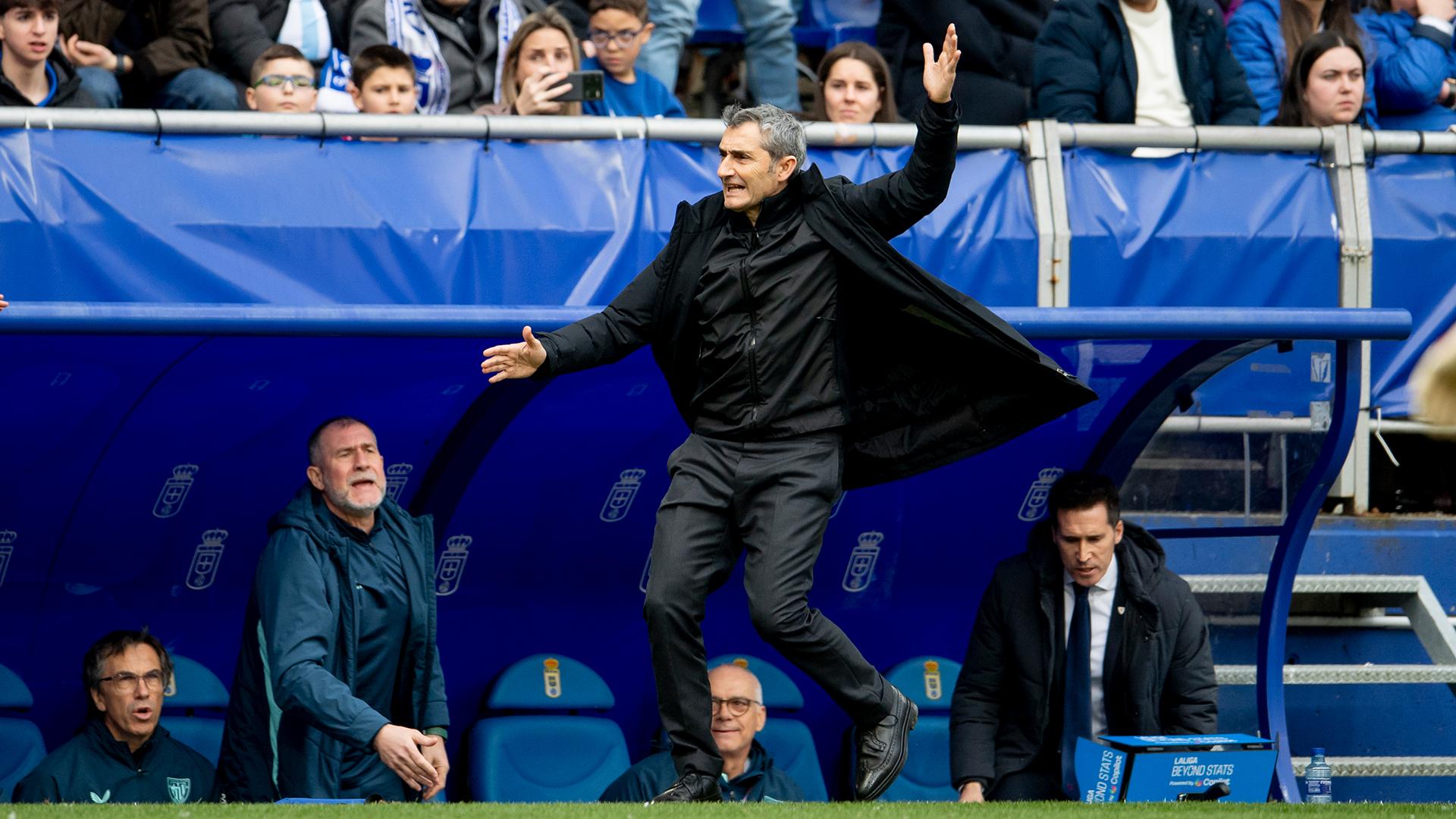 “Se notaba la tensión en el partido. Son tres puntos muy valiosos por lo que había en juego”. Ernesto Valverde compareció ante los medios de comunicación al término del partido que enfrentó a Athletic Club y Oviedo en el Carlos Tartiere. Los leones encadenan el segundo triunfo en LaLiga y miran hacia arriba: “El primer tiempo no ha sido de los mejores, ellos han estado por encima. En el segundo teníamos que ir a por todas y hemos cambiado a una actitud más competitiva en el segundo tiempo. Al final lo hemos logrado”.