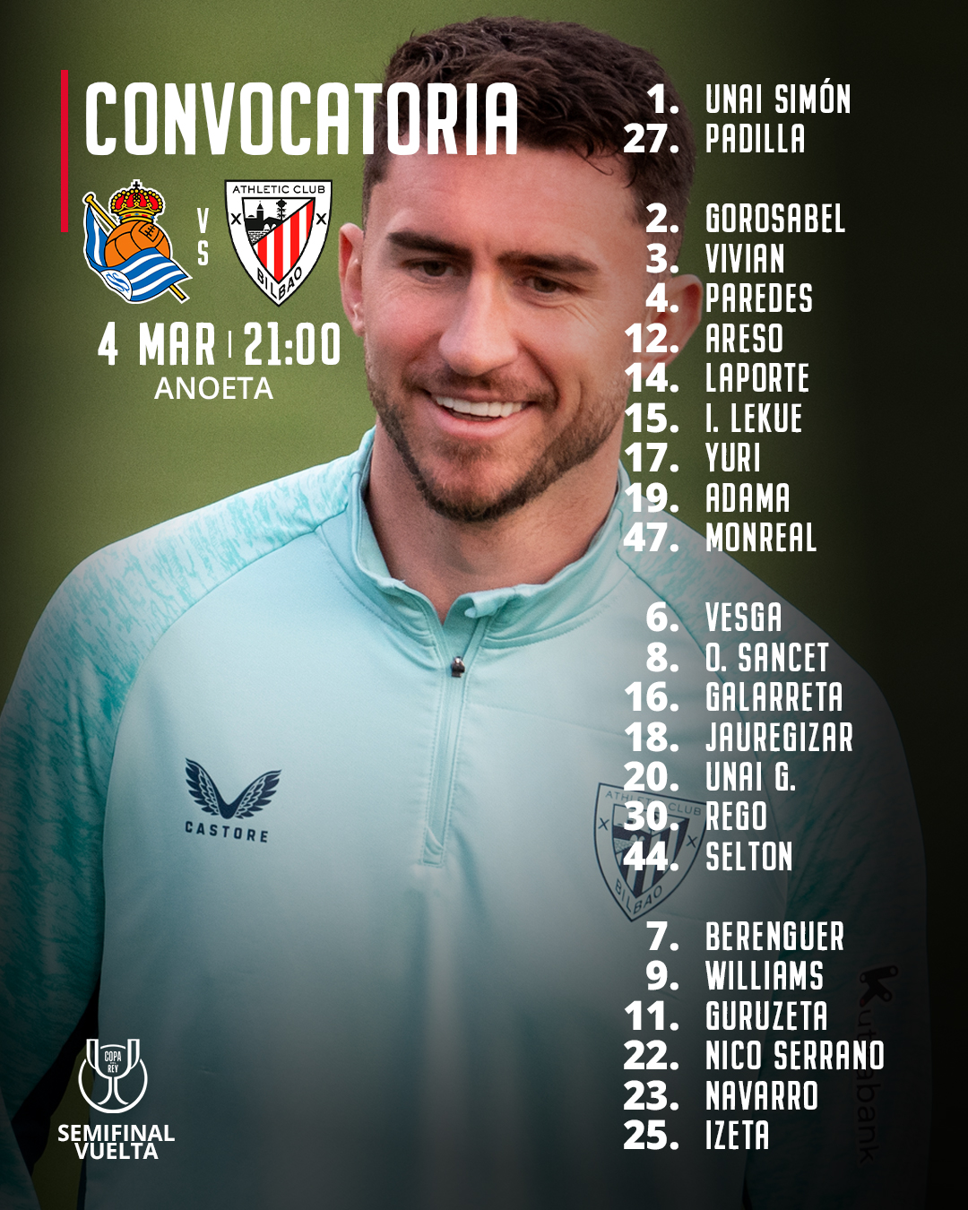Convocatoria: Real Sociedad-Athletic Club (Copa 2025-26, semifinal-vuelta)