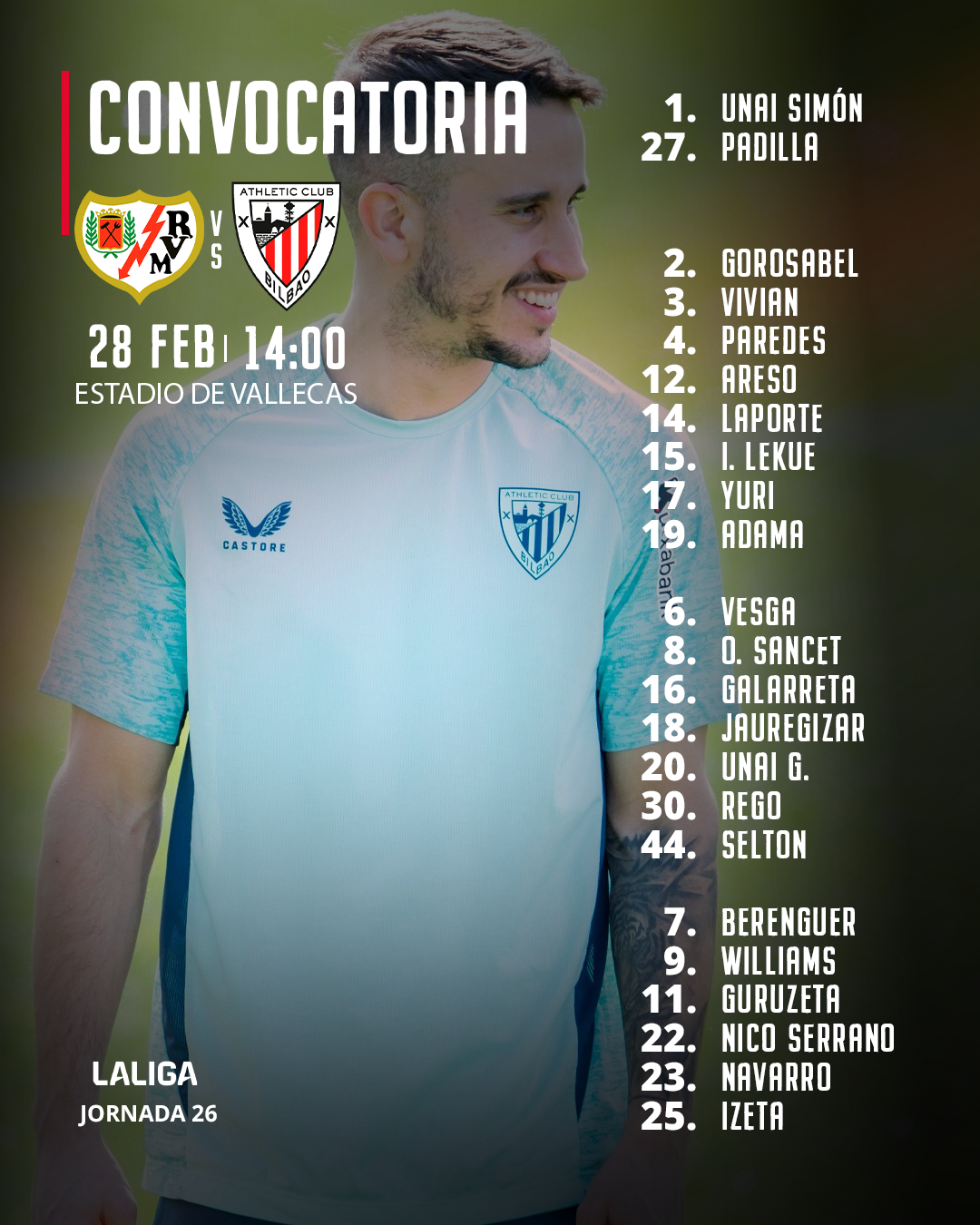 Convocatoria: Rayo Vallecano-Athletic Club - (LaLiga 2025-26, J26)